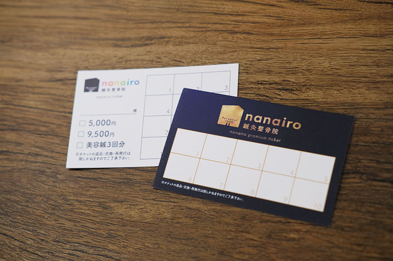例えば、通常であれば自費治療20分+鍼治療(2部位)+カッピング=9,600円ですが、nanairoコースでは上記メニューが6,900円での提供となります。(組み合わせによる)